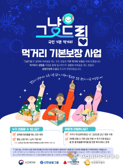 [어게인뉴스=김혜경 기자] 보건복지부와 아동복지 전문기관 초록우산이 기본 먹거리와 생필품을 지원하는 '그냥드림' 사업의 전국 확산을 위해 손을 잡았다. 고물가와 경기 불확실성 속에서 생계 부담이 커지는 상황에서, 정부 정책과 민간 자원을 결합한 협업 모델이 실질적 안전망으로 작동할 수 있을지 주목된다.